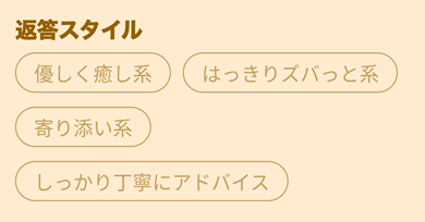 という事でウラーノの登録画面にはもうこういった選択肢が用意されています。返答スタイルはきっちりと選び、もう不倫を辞めたいなら「はっきりズバッと言って貰い距離を置こう」とか今頑張れないから優しくして欲しいのであれば優しく癒されたり寄り添って貰うように選びましょう。