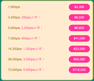 | ダイアモンド | 150ポイント |